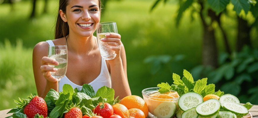 Consume una dieta equilibrada rica en frutas, verduras y agua para una piel radiante